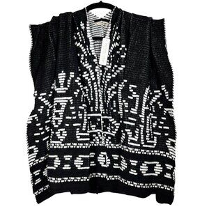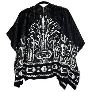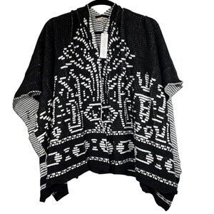 Soft Surroundings Womens Black Aztec Stretch Stitch Tribal Wrap Poncho One Size