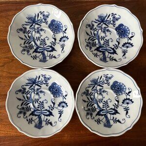 Set of 4 Blue Danube Tea Cups and Saucers Porcelain Onion Pattern Vintage Japan