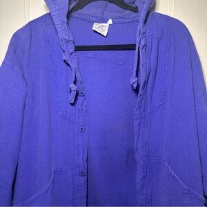 Purple Cotton Oversized Tilley Endurables Button Down Hooded Spring Jacket, Size Medium