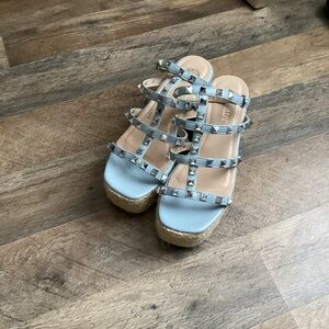 Olivia Miller Blue Studded Wedge Sandals