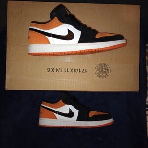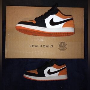 Air Jordan 1 Low Shattered backboard Men's Size 10 Black/Orange are pre-owned great condition There is a flaw to the right shoe in the toe area...two small light marks you can view it in the last photo.. no other flaws