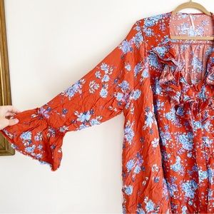 Free People Lorretta pop Print Tunic blouse long sleeve floral ruffle oversized