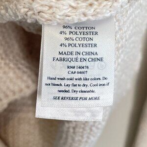 Faherty Cream Knit Pullover Sweater With Hood & V-Neck, M
