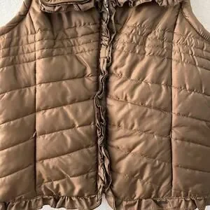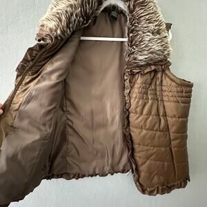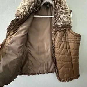 Gorgeous New Directions Brown Puffer Vest with Faux Fur Collar & Ruffle Trim. Size XL.