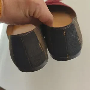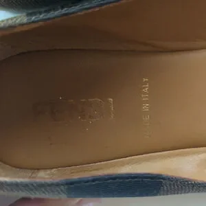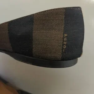Fendi Womens Flats Ballet Bow Slip On Closed Toe Canvas Leather Red Brown Size 6