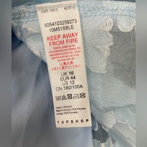 NWT Topshop Daisy Organza Bow Floral Sheer Babydoll Mini Dress Blue White Sz 12