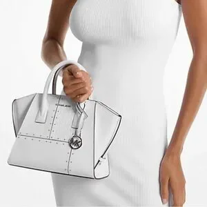 Michael Kors Avril Small Studded Patchwork and Signature Logo Satchel Crossbody