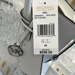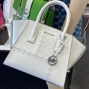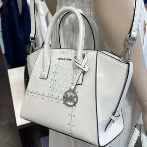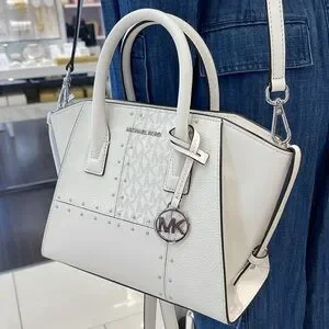 Michael Kors Avril Small Studded Patchwork and Signature Logo Satchel Crossbody Bag