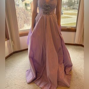 Step into elegance with this stunning lavender evening gown. Perfect for special occasions, this dress features a flattering silhouette and exquisite detailing. Make a statement with its beautiful color and sophisticated design. I am 125 pounds. 5’5. NEVER worn. Tags on.