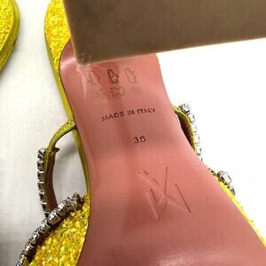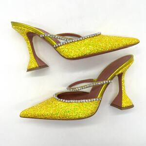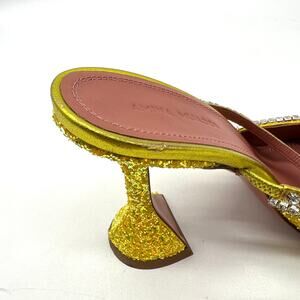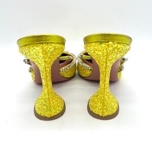 AMINA MUADDI Glitter Gilda Heeled Mule Women 8 Yellow Rhinstone Strap Pointy Toe