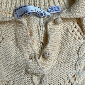 NEEDLEWORKS vintage yellow cable knit short sleeve polo sweater size medium