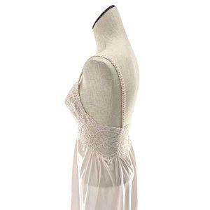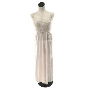 Vintage Nightgown Pastel Pink Sheer Lace Maxi-Length Medium 80s Cottagecore