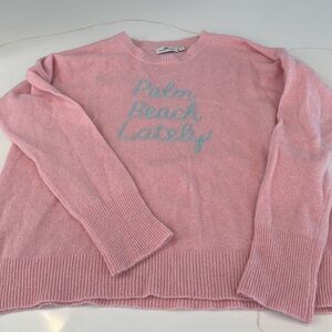 Experience the perfect blend of comfort and style with this Vineyard Vines Palm Beach Lately sweater. Crafted in a soft pink hue, it features a classic crew neck and playful embroidered text on the front. Ideal for cozy, casual wear during cooler seasons. Never worn. Size large. Lying flat, measures approximately 23” from pit to pit and 24” from shoulder to hem. No trades. Bundle and save!