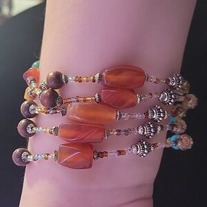 Add a pop of color to your outfit with this vibrant beaded necklace. Featuring a mix of red, blue, and orange beads, this piece is perfect for any occasion. necklace is 20", all purchases come with a free gift
