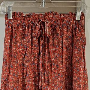 Hautellie Boutique Cotton Maxi Skirt Red Floral Print Ruffle Tier Size Med NWOT