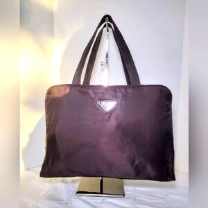 Prada Tessuto Dark Brown Nylon Shoulder Bag Tote .