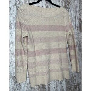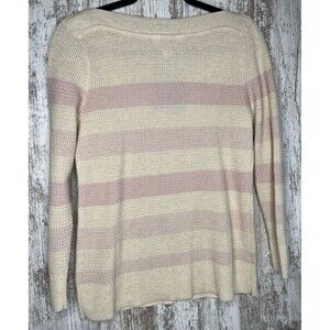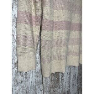 This Market & Spruce sweater is a must-have for any fashion-forward woman. The pink color and striped pattern make it perfect for casual occasions during the winter, fall, or spring seasons. The waffle-knit style and 3/4 sleeves add a touch of sophistication to the casual look.