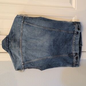 Classic blue denim vest by Levi's. Features button closure and front pockets. Be aware that this vest does not have hand pockets which makes the vest even more slimming.