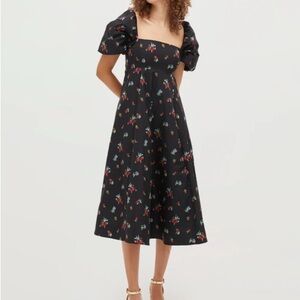 Elegant black dress with a floral pattern by Hill House. Perfect for any occasion, offering both style and comfort.