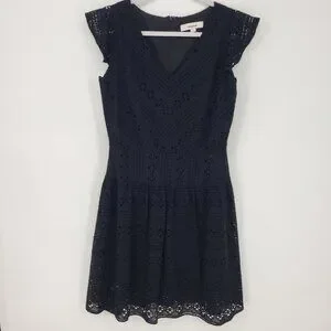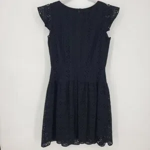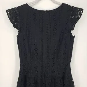 3/$25 LOFT Eyelet Lace Mini Dress 4 Fit and Flare Floune Ruffle Cotton Black