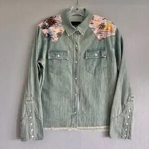 Le Superbe Surf Cowboy Pearl Button Western Shirt Sun Faded Denim Revolve Sz 8