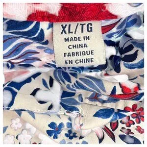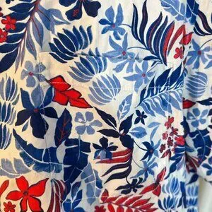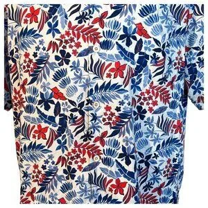 • Tropical red/blue floral print