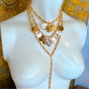 Gold plated coin hammered Y necklace layered chain ⭐️ adjustable
