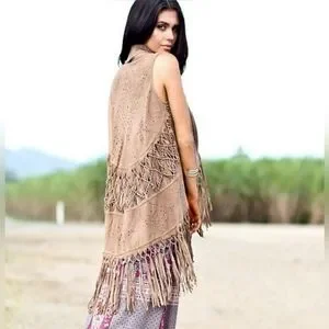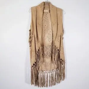 EUC. Mahiya Nomad Vest in tan. Made with softest and smoothest of suedes. Hand-cut diamond detailing , intricate braiding and gorgeous fringe. Like new condition. No flaws.