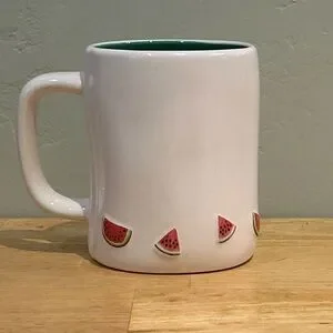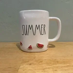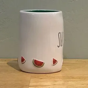 Charming hand crafted ceramic mug from Rae Dunn Artisans Collection By Magenta. Super cute mug feature the word Summer in Rae Dunn signature text. Adorable watermelon design. Teal interior. Classic Rae Dunn minimalist design. Perfect for enjoying your favorite summer beverage. Brand New!