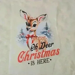 Oh Deer Christmas Is Here Vintage Style Christmas Reindeer DTF Transfer