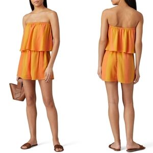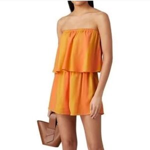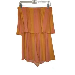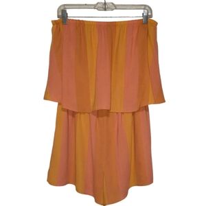 SMYMuMu Strapless Stripe Romper Orange Yellow Clay Summer Beach Vacation Coachel