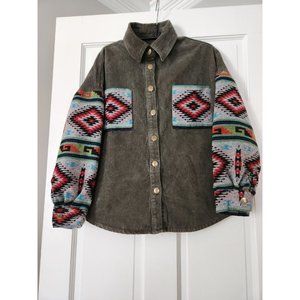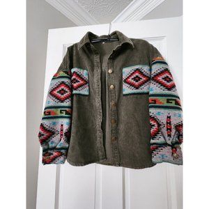 ARMY GREEN Cordoroy Winter Jacket w/Tribal Print Sz S