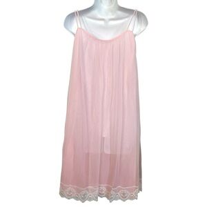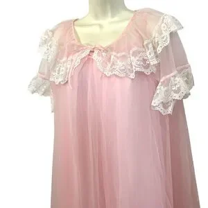Estate sale FABULOUS 1960βs Sheer Pink and Lace Trim Two piece penoir set! π Itβs gorgeous and in excellent preowned condition!! π©· Nightgown features two layers of sheer fabric and the penior is accented with lace trim, puffy sleeves and tie front. No size tags present.