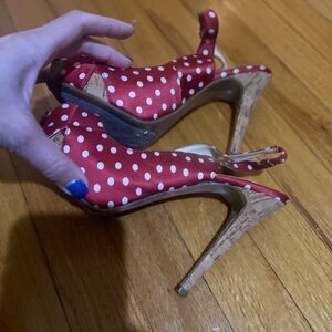 Guess Red/White Polkadot Open Toe Heeled Shoes