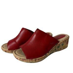 B.O.C.Women’s Red Leather Wedge Sandals/ Floral Design Size 8M. Pre owned good condition