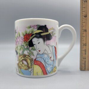 Vintage Japanese Porcelain Tea Cup Mug With Geisha Art Kimono Design Japan