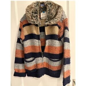 Sparrow Size Small S Anthropologie Striped Wool Zip Up Cardigan Sweater