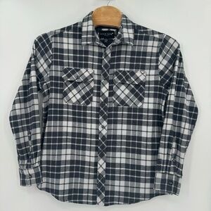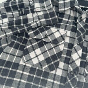 Jared Lang Mens Large Black White Plaid Long Sleeve Button Down Flannel Shirt