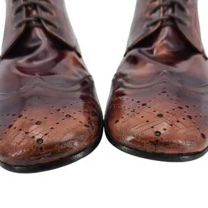 Prada Italy Mens 7.5 Distressed Brown Leather Wingtip Derby Oxfords Dress Shoes