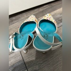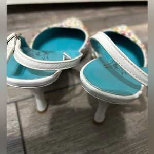 Jeffrey Campbell 💎 🌈 floral Blue&White leather heel white Multi pointy toe