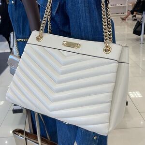 Michael Kors Whitney Medium Quilted Tote Shoulder Bag Light Cream NWT