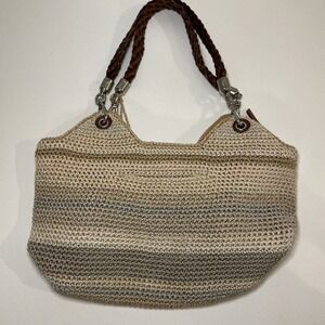 The Sak Classic Crochet Knit Striped Shoulder Bag Purse Hippie Handbag Boho