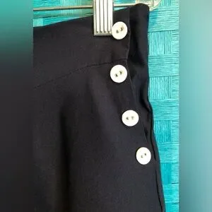 Buttons only on one side. Came that way! Pre owned. Tried on, never worn. Pockets. Back zip.