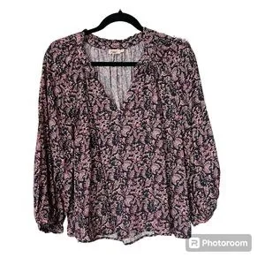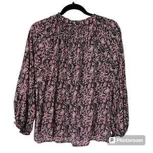 Faherty Portia Top with Fiona Black Floral Print Medium
