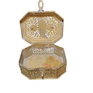 Elegant brass box with intricate designs. Perfect for storing treasures.