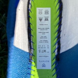 Experience the perfect blend of comfort and style with Rothy’s Round Toe women’s flat slip-on shoes in a deep ocean blue hue. Crafted for the modern woman, these size 7.5 flats boast a sleek design and versatile color that effortlessly complement any outfit, making them a go-to for both casual and more polished looks.