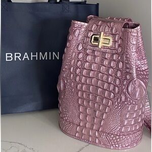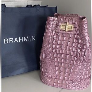 NWT Brahmin Maddie Mulberry Potion Sling Bag Backpack Croc Embossed Leather