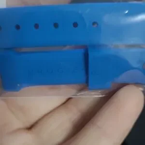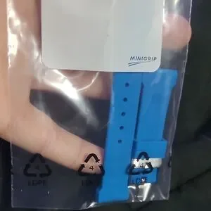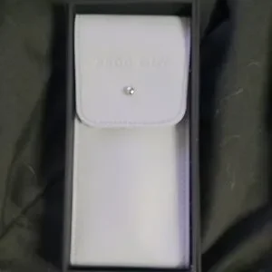 Elegant light gray leather case with a sleek design. Features a secure snap closure. with neon blue wach strap inside new in box smoke-free home, no know defects