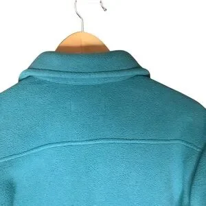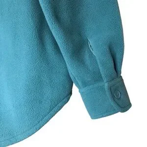 Excellent pre-owned condition. This is a long-sleeve button-up shirt with dropped shoulders and a rounded hem. It’s made with Polartec® 200 — a breathable performance microfleece that gives you lightweight warmth with velour-like texture. This version is made with 100% recycled materials.Pretty teal blue.