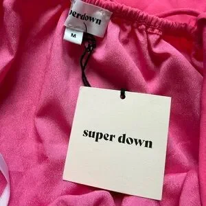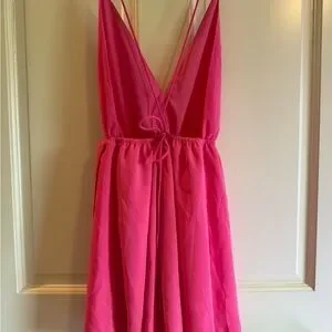Bright pink sleeveless dress with a deep V-neckline. Perfect for summer outings.